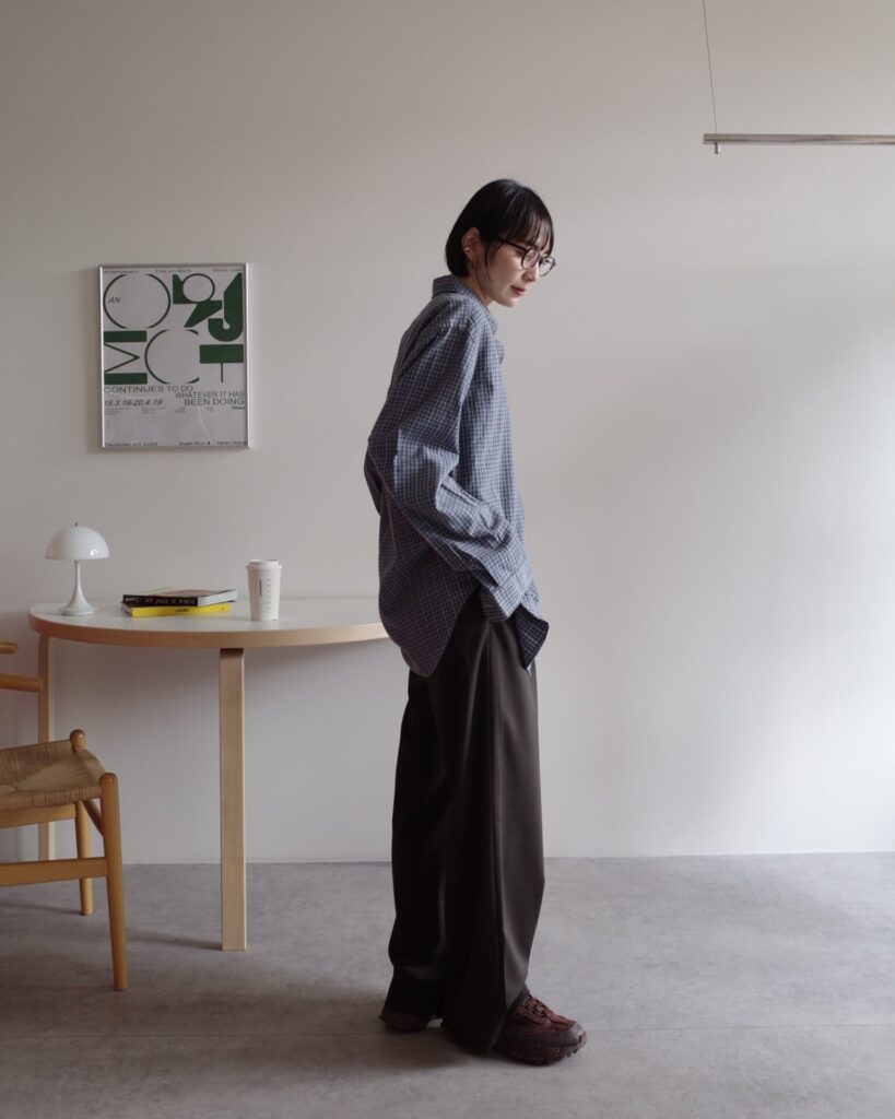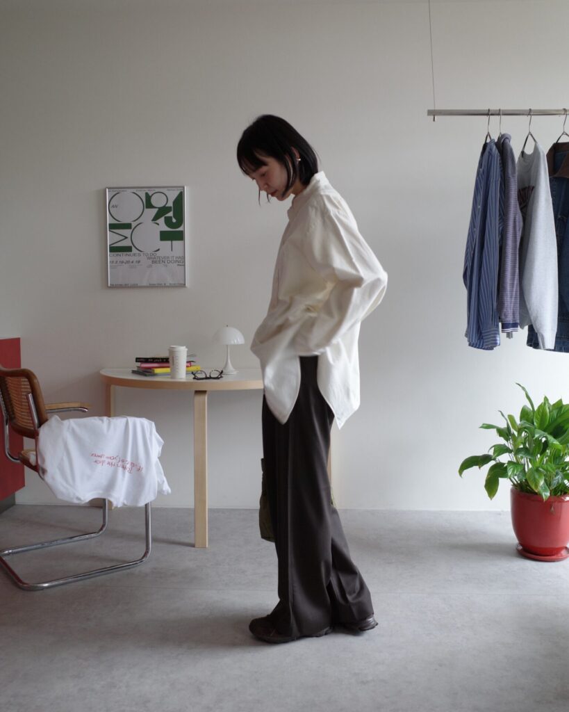 スラックスというシンプルなアイテムだからこそ、シャツやジャケット、スニーカーまで、さまざまなスタイリングに自然と溶け込みます。